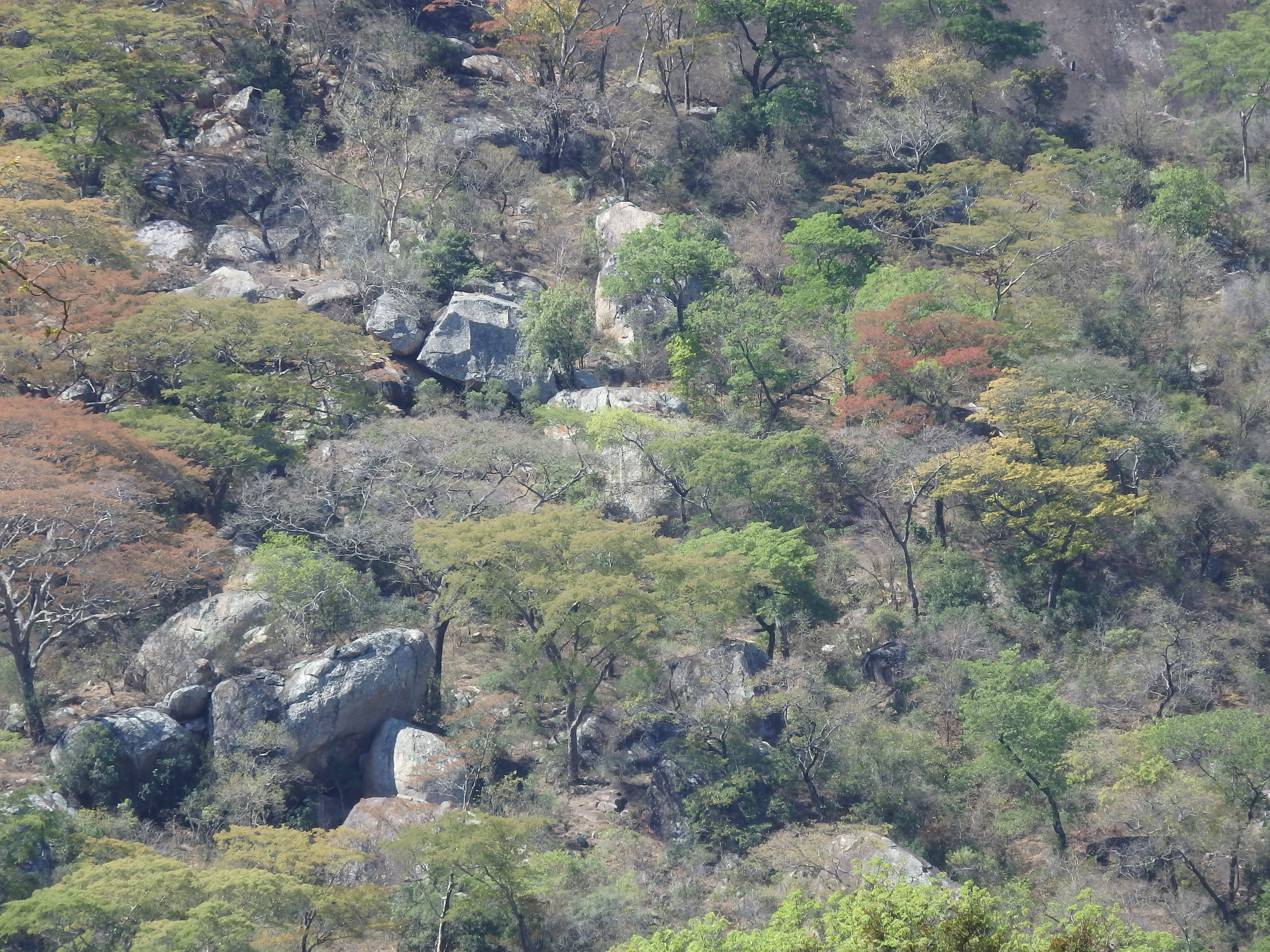 Bushveld trees on a rocky outcrop on the road to Harare. But, here too, are there some alien species on the loose?