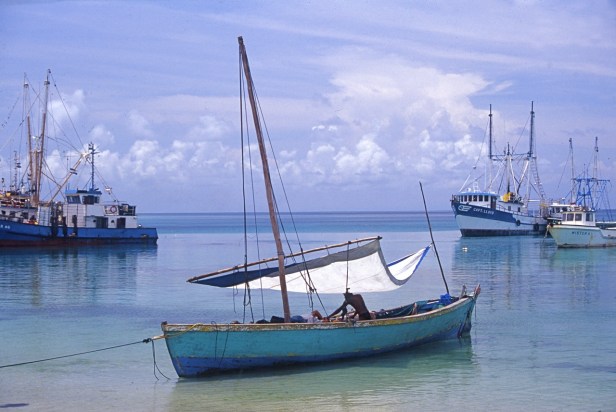 “After Papa moved back here [to the big island] he used to fish. He used to go over to King Cay and up to Miskito Cays. Most of his time he used to spend over there. He fished turtle. After the lobster came in he used to fish turtle and lobster. And afterward they had a year that a Jamaican come down and fishing fish, and send them to Jamaica.