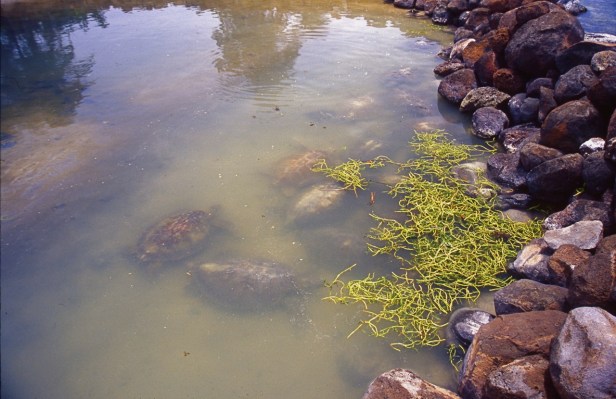 To catch turtle, we take a line, cotton line, and then knit it. When he done knit a long net, maybe about six or seven feet, then he put rope on one end, then he put some long buoys to keep it floating. Then he put a big rock with a rope and anchor that net. Then he stretch that net out a long way go round and they find where the turtle sleep on little rocks. Then them surround that rock where the turtle sleep. Next morning the turtle gets catched coming out and them fight to get out and wrap themselves up in the net. You have to go very early, before the sunrise. You’ve got to be there to get them turtle soon. Soon you have to be there.