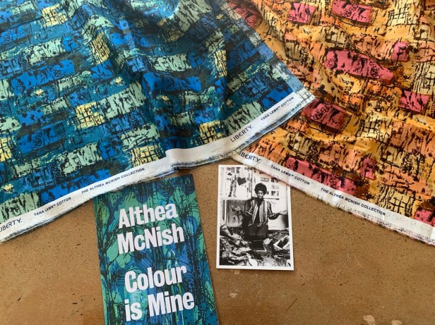 McNish (1924-2020) came to the UK from Trinidad in 1950 and became a celebrated international textile designer and a key member of the Caribbean Artists Movement. She drew on her Trinidadian heritage to bring colour and joy to mid-century Britain. She said her imagination was ‘fed by folk art from many cultures, by architecture and technology, and by the flowers of the English countryside, which I transform into Caribbean flamboyance.’